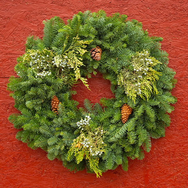 Using curated fresh local greens, the Northwest Traditional wreath brings a classic and lush look to your front door with noble fir, incense cedar, juniper, and pinecones. This is a great hostess gift, or a special Oregon treat for out-of-state friends & family. Wreaths can be shipped anywhere across the country straight from our farm.